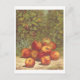 This postcard is a reproduction of a vintage lithograph showing red apples in a field in the fall/autumn.