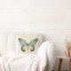 This Pillow features a beautiful vintage illustration of an aqua blue butterfly on a neutral background.
