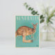 This vintage Australian design features a kangaroo with eucalyptus leaves on a bright blue background. The top of the design has the word 'Australia' clearly printed. The bottom of the design reads 'see the island continent up close' along side the Commonwealth coat of arms.