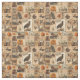 This fabric features a vintage-style collage of autumnal imagery, blending rustic charm with nostalgic ephemera. Arranged in a patchwork layout, it includes pumpkins, pinecones, feathers, oak leaves, birds, and antique-style postcards and sketches, all set in warm sepia and earthy tones. The textured look of aged paper and botanical illustrations creates a timeless aesthetic, perfect for fall décor, farmhouse style, and vintage-inspired theme.
