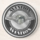 Vintage aviation art with metal globe and silver aviation wings on a retro style logo
