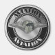Vintage silver aviation art, metal globe with silver aviation wings on a retro style logo.