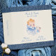 Cute Vintage blonde baby in blue blanket with teddy bear on creamy color background with the exception of blue jean denim edges at top and bottom. *Customize all text areas, front, back & spine. Includes baby's name and birth date, parent's names, and baby's initials on back.