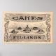 This attractive vintage French poster is advertising for a bakery. The black and beige sign has the words “Cakes’ and “Fillings” and pictures an array of cakes and pastries. This print would be perfect for the baker in your life.