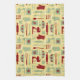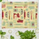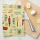Vintage Baking kitchen towel with a cute vintage colored style pattern with baking implements and simple flowers all in yellow, green, and red. You can make the pattern larger or smaller on the kitchen towel.