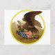 A vintage illustration of a bald eagle with an American shield and olive branches.