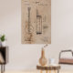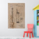 A technical patent diagram of an invention for a new style of banjo dated 1896 which has been designed for wall art on a vintage style background.