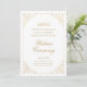 Celebrate your Islamic Muslim Walima ceremony with this vintage reception invitation card. A simple white cream background sets an elegant tone, while the gold baroque floral leaf ornaments decorate the corners of this ornate border. Arabic wording is in golden color. The newlywed couple's names appear in a timeless, formal typography. "Walima Ceremony" is written in stylish script to give a romantic and luxurious touch.