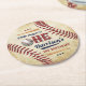 Vintage Baseball Boys 1st Birthday Round Paper Coaster