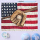 Vintage baseball, bat and glove on an American flag