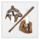 Vintage worn and weathered baseball, glove, bat and catcher's mask - symbols of America's pasttime - on a white background
