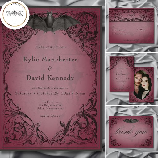 Vintage Bat Until Death Burgundy WeddingDesigned by Kathe Santillo