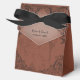 Elevate your gothic wedding with a Victorian-inspired wedding favor box that exudes timeless elegance and mystery. Designed to resemble an antique book binding, this stunning design features intricate a black lacey filigree on a vintage, distressed rust background, evoking the charm of a bygone era. Let your love story unfold with a favor box as unforgettable as your day. Created by Simply Farmhouse Press.