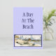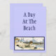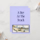 A custom invitation with a vintage illustration from a storybook of a child laying on the sand at the beach. His dog swims far out in the waves. Click Customize It to change fonts or colors.