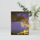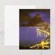 Vintage illustration travel design featuring Botafogo Bay and beach with mountains in the distance in Rio De Janeiro, Brasil. A beautiful night with lights reflecting in the water of the bay.