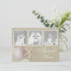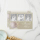 The look of burlap with ivory lace accented in pink. Upload a favorite photo and customize text as needed.