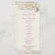 Vintage ivory lace and burlap printed beach wedding rack card program with starfish and sand dollar and accented with pink text.