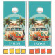 Natural Wood Cornhole Set, Yellow and Purple bags
