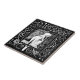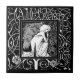 In its original black and white, a reproduction of a wood-cut illustration created by Aubrey Beardsley for a special edition of Morte D'Arthur, c 1890. It depicts a beautifully stylized kneeling angel, surrounded by twining vines and flowers. Order as a tile, frame it to use as a trivet, or place it on a trinket box