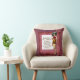 Fun kitschy throw pillow features vintage costumed beauty photo cutout with funny drinking wine outdoors quote on dark wine print background