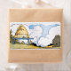 A happy straw beehive set in meadow with buzzing bees on a scenic vintage art farm landscape. Click Customize It to add your custom text, change label size and more, even save your design for later.