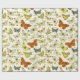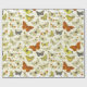Vintage Beige Yellow Butterfly Pattern Script Wrapping Paper