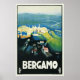 Reproduction print of a vintage travel poster promoting tourism to Bergamo, Italy. Very rare, expertly restored. This art piece would look great when framed in the home, office, bar, cafe, pub or restaurant! Please customize the poster size, texture, border and/or frame to suit your taste.