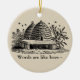 Ornament with vintage letterpress image of a beehive by Thomas Bewick. Color and message can be personalized.