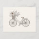 Postcard: A delicate line art illustration showcases a classic bicycle, equipped with a front basket brimming with beautifully detailed flowers and foliage. The minimalist color palette emphasizes the intricate design, evoking feelings of nostalgia and timeless elegance.
