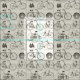 A pattern based on a modified illustration of various types of bicycles from a German encyclopedia from around 1900.