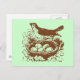 Vintage bird with eggs in nest postcard. Background color can be customized.