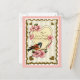 A colorful, little bird with lovely pink flowers and gold hearts. Text: St. Valentine's Greetings in a cream-colored heart. Image of a Vintage Valentine Greeting Card on a custom pink background.