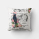 A vintage bird sitting among beautiful pink roses is set on a background composed from a Parisian advertisement, complete with the shop address in Paris. A lovely and interesting pillow.