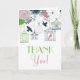 Illustrations of matte pink, green and blue flowers, birds and birdcages. This thank you card is perfect for weddings, baby showers, bridal showers and any other events.