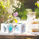 Vintage birds by D'Orbigny decorate this bridal shower favor box with teal lettering and delicate blue watercolor background.