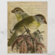 Design features vintage bronze olive color cute birds sitting on branches, handwritten torn paper in the background.