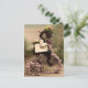 Romantic vintage postcard with nice old pictures of a boy on a two wheel surrounded by flowers and a letter in hands. This postcard with nostalgia feeling is perfect to send birthday greetings to your friends who like vintage and retro stuff