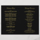 Elegant and glamorous art deco wedding ceremony sheet programs inspired by ornate vintage Gatsby style and the roaring 20s. Black background color with gold design. Personalize the custom text for your bridal party, ceremony information, and thank you message. Note: these text weight paper programs arrive flat and require folding to assemble.