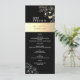 Vintage, botanical, boho, chic, calligraphy, modern, elegant black and gold wedding menu with gilded floral lace.