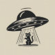 Vintage Black Cat UFO Spaceship Funny T-Shirt.