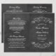 Charming vintage scrollwork pops against a chalkboard-style black background for a rustic yet elegant ceremony program. Antique flourish accents frame your names and wedding date on the front cover, complemented by a coordinating patterned backing. Fully customizable inside pages include space for your bridal party, ceremony order, and a heartfelt thank you note. Programs are printed on text-weight paper and arrive flat, requiring a simple center fold.