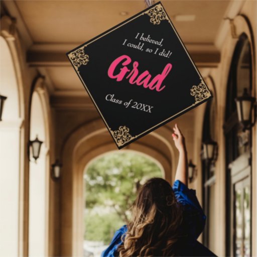 Vintage black with gold baroque frame. Pink and white typography. Customize and personalize with the party details. Cheers to the Graduate!!.