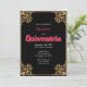 Vintage Black Gold Baroque Frame Pink Quinceañera Invitation