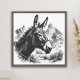 Add rustic elegance to your walls with this vintage black-and-white donkey portrait. The bold shading and desert mountain backdrop bring timeless Western charm, making it a striking focal point for farmhouse, ranch, or country-inspired décor.