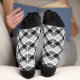 Vintage black white flannel plaid diagonal pattern socks