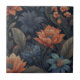 This exquisite decorative ceramic tile boasts a vintage-inspired design that effortlessly blends timeless charm with modern aesthetics. The dark color palette, reminiscent of moody evenings, features deep navy, charcoal, and forest green tones. Against this backdrop, vibrant burnt orange and teal floral motifs burst forth, creating a captivating contrast. The intricate pattern showcases an array of flowers in full bloom, their delicate leaves and stems intertwining to form a lush tapestry effect. The background has a subtle linen texture, creating depth and tactile interest. Ideal for kitchen backsplashes or bathroom decor, this tile adds character and sophistication to any space.
