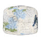 Vintage Blue Birds Flowers Italian Ottoman Pouf