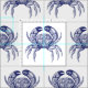 Customizable invitations and accessories with a stylized vintage image of a crab.