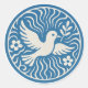 This elegant round sticker features a beautifully crafted white dove of peace carrying an olive branch, set against a striking blue background. Inspired by traditional linocut and woodblock art, the design is surrounded by flowing organic lines and delicate flowers, symbolizing harmony, hope, and new beginnings.