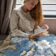 A Blue, Gold And White Floral Vintage Pattern Fleece Throw Blanket